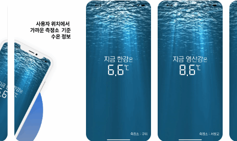 오길호2024-03-30T14:55:54+09:00“Han River Gazua” is an app that provides water temperature information for the four major rivers. It notifies water temperature information based on the user's location, referring to the nearest measurement station. Water temperature data includes the Han River, Geum River, Nakdong River, and Yeong River. Play Store (Android) App Store (iPhone)